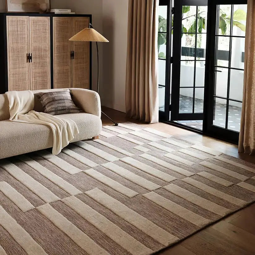 - Striped And Colour-Block Rugs: Perfect for minimalist or Scandi-inspired spaces.
